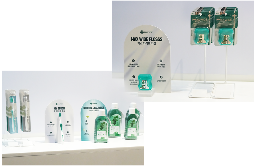 다양한 구강케어를 위한 제품들도 함께 준비해 저마다의 다른 구강 고민을 위한 제품들을 소개할 수 있었습니다.